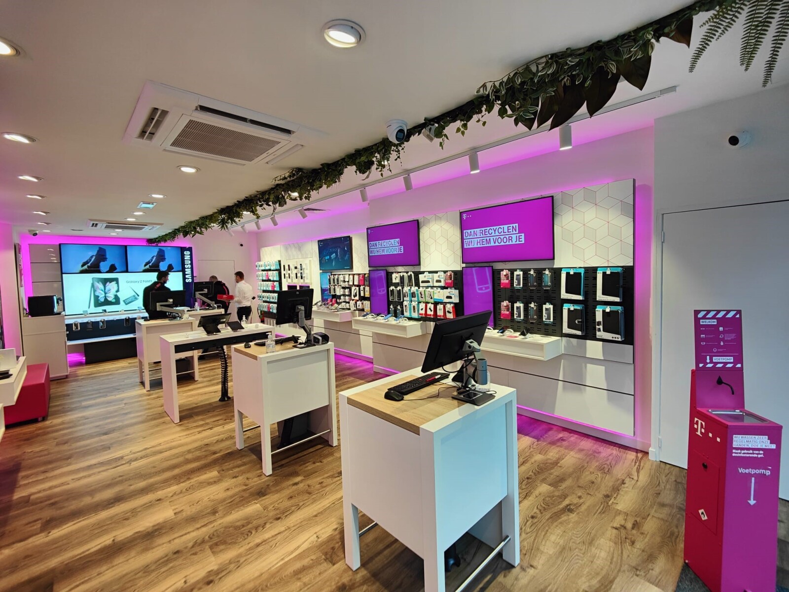 Waar T-Mobile niet stopt voordat iedereen is verbonden, stopt UTS Van der Geest niet voordat T-Mobile shops voorzien zijn van de benodigde onderdelen. ‘Ze ondersteunen ons al jaren en staan altijd klaar’, aldus Esther Andriessen en Danitsja Eekhout, Construction and Maintenance Managers Retail.