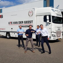 ‘Supertrots ben ik op deze splinternieuwe vrachtwagen. De nieuwste aanwinst in de vloot van UTS Van der Geest Verhuizingen. De DAF CF heeft het laagste brandstofverbruik in zijn klasse, dus is ook nog eens beter voor het milieu.’